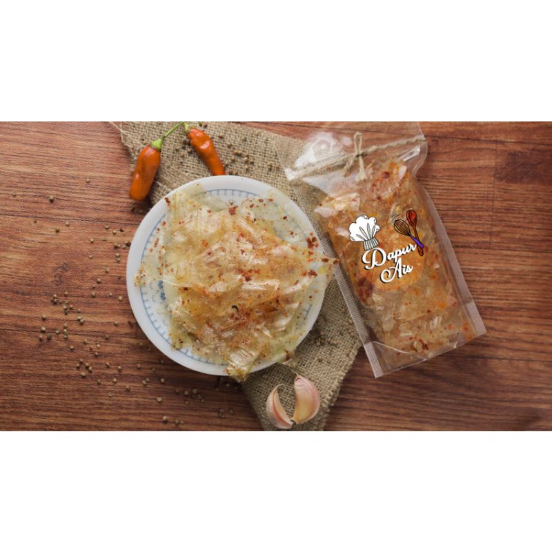 Keripik kaca by dapur ais di olah dengan bumbu rempah alami khas dapur ais. tersedia varian rasa original cabe merah pedas dan extra pedas.