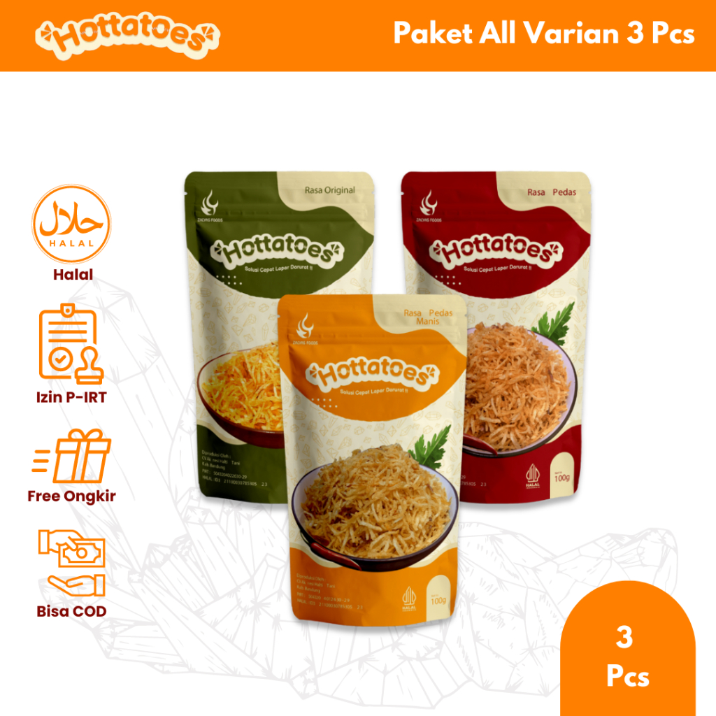 (PILIH 3 RASA DI NOTE) Paket Hottatoes Snack Kering Kentang All Varian 3 Rasa