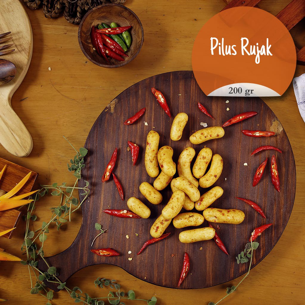 pilus yang dasarnya renyah dan gurih ditambah bumbu rujak yang khas semakin membuat rasa enak, apalagi untuk pecinta pedas