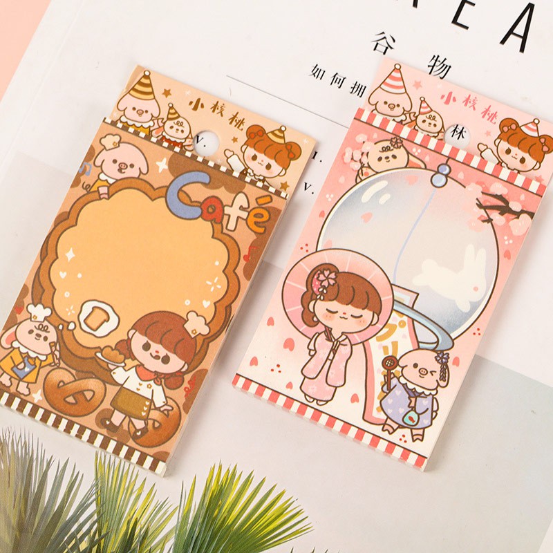 Keceriaan hari-hari Little Walnut Girl akan membawamu ikut senang. Selain untuk mengingatkanmu pada tugas penting, sticky notes warna-warni ini juga bisa sebagai penghangat di sela-sela halaman bukumu.
