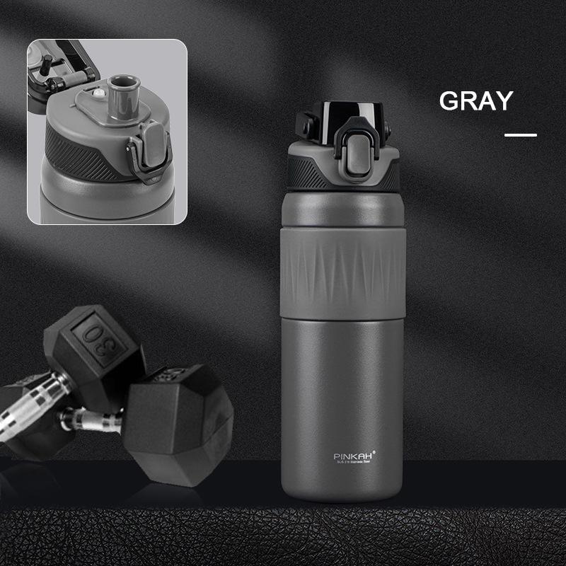 PINKAH Новая 316 нержавеющая сталь Спорт Фитнес Прямой Питьевой Термос Чашка Большая Вместимость Портативная Ручка Индивидуальный Подарочный Бутылка Для Воды 460ml серый