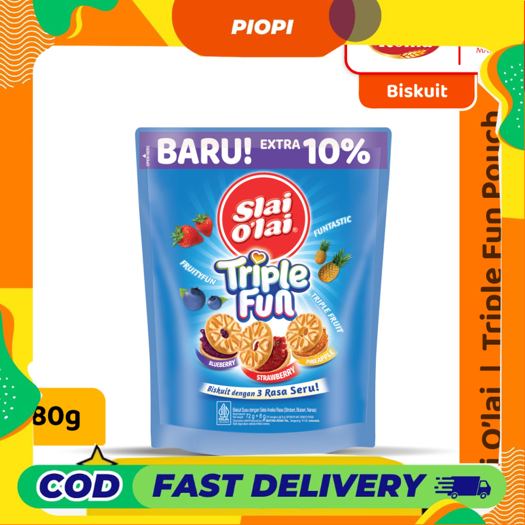 yuk cobain slai olai triple fun, biskuit dengan 3 rasa yang seru!
