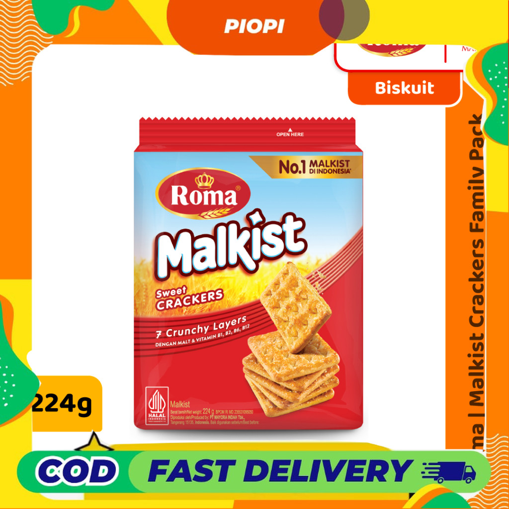 Biskuit menarik yang dicintai oleh seluruh keluarga Roma Malkist Crackers Jadikan teatime sebuah kesempatan untuk menantikan paket Crackers Roma Malkist. Crackers kami diperkaya dengan vitamin B1, B2, B6 dan B12, untuk camilan sehat yang bisa kamu nikmati di mana pun. Produk Roma spesialis dalam kebaikan dan kebahagiaan. Semua produk kami dibuat dengan bahan-bahan berkualitas tinggi untuk membawa kebaikan dan kebahagiaan bagi semua keluarga.