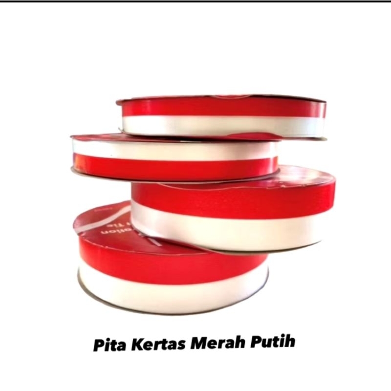 PITA KADO MERAH PUTIH / PITA KERTAS 1 INCI (1 ROLL)