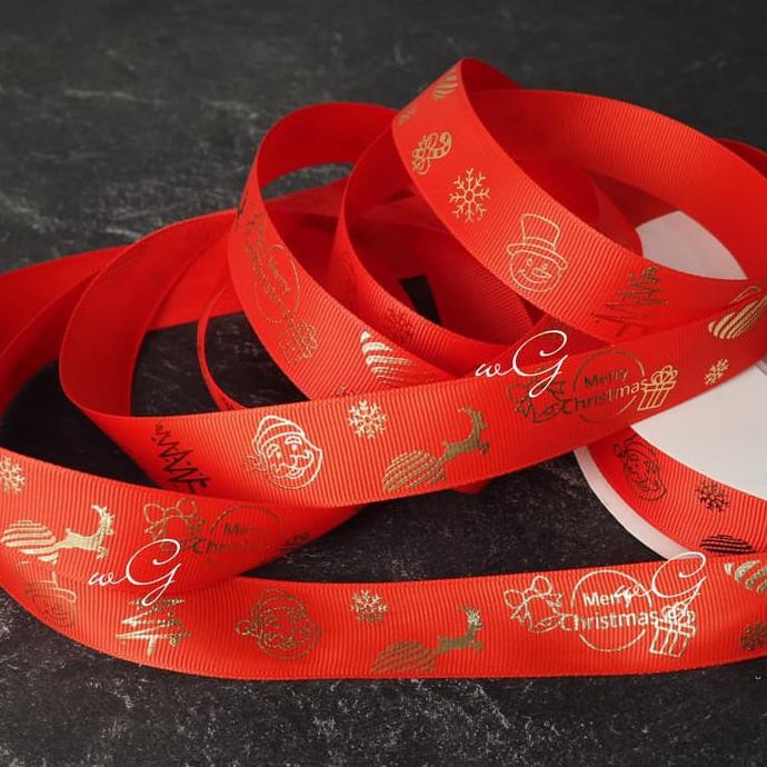 PITA NATAL /CHRISTMAS - GROSSGRAIN - RUSA & SANTA-MERAH;L 2.5 CM;P 50Y TERLENGKAP