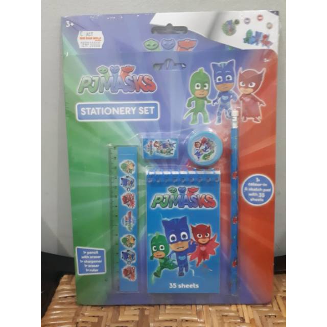 Dapat notes, penggaris, pensil, penghapus, rautan, pensil warna, coloring sheet, stiker
