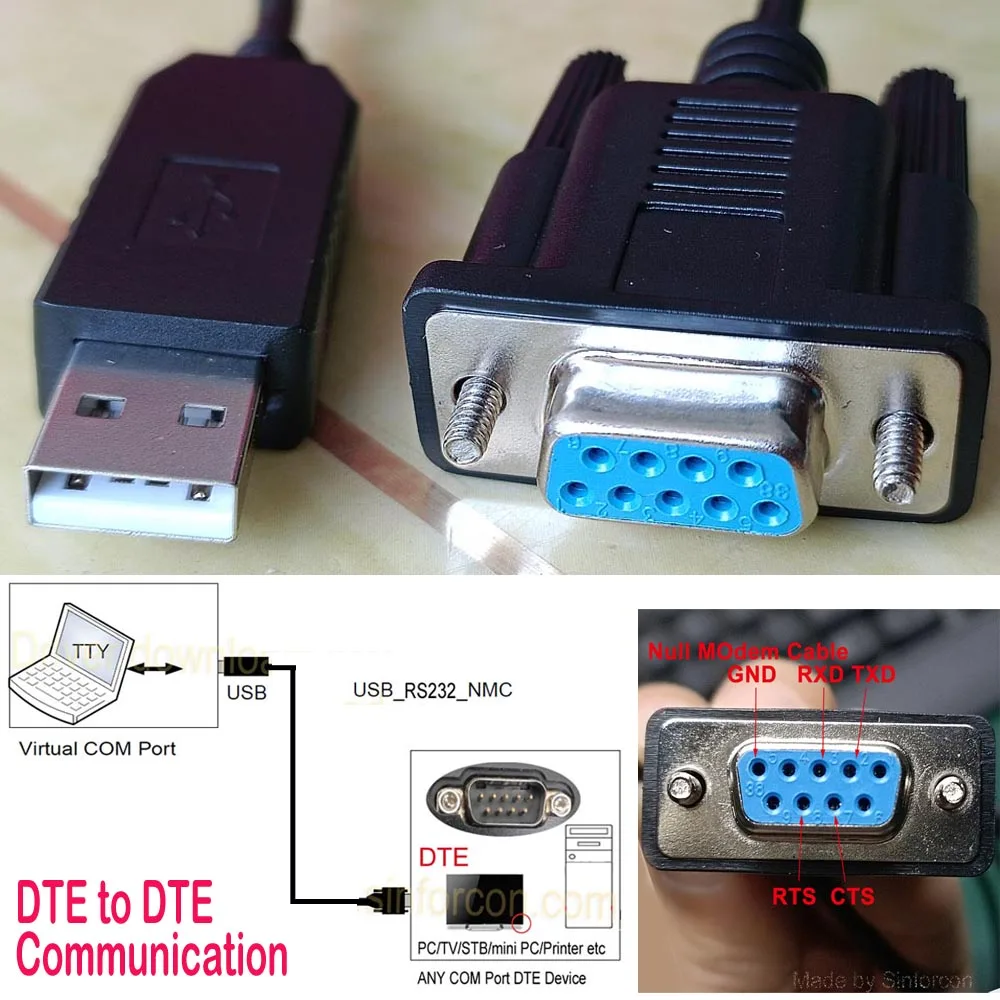 PL2303 USB RS232/NMC/DB9F/Dsub9/Female/null modem Cable Routers/SAT/STB/PLC/IPC/SBC/Controller PC Link/Interface Cable