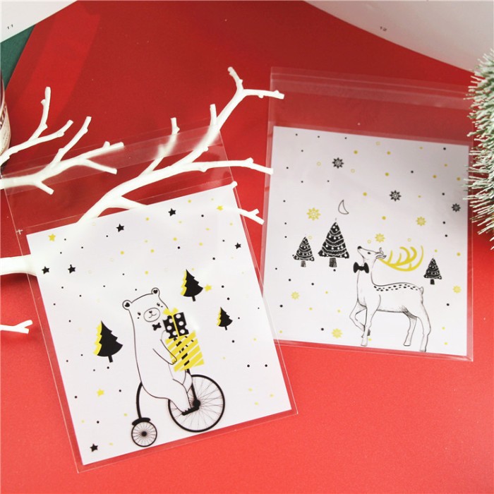 PLASTIK COOKIES NATAL PACKAGING 100PCS WHITE PLASTIK OPP CHRISTMAS