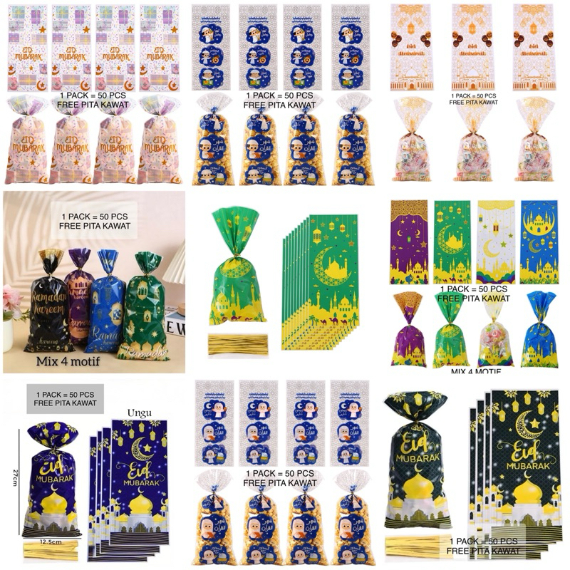 PLASTIK SNACK IDUL FITRI ISI 50 PCS FREE PITA KAWAT PLASTIK OPP GOODIEBAG RAMADAN PEMBUNGKUS COOKIES