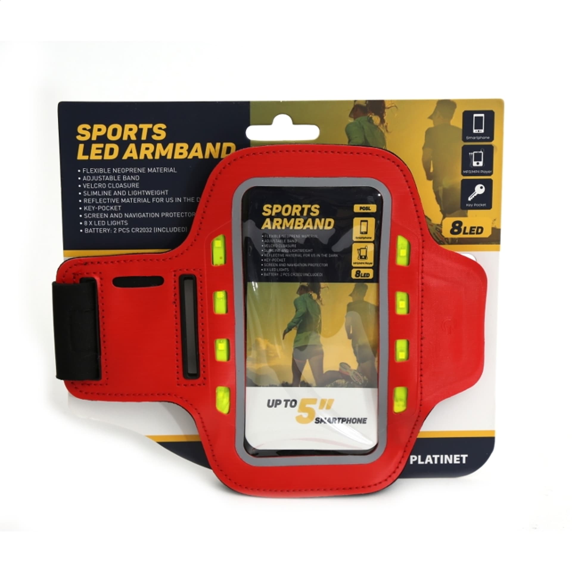 PLATINET SPORT ARMBAND FOR SMARTPHONE RED WITH LED [43708]