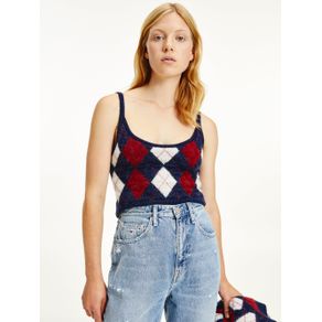 PLAYERA TOMMY JEANS DE TIRANTES CON ROMBOS ARGYLE DE MUJER Talla: M