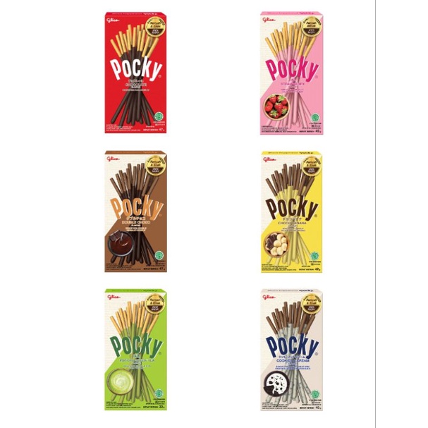POCKY CHOCOLATE / STRAWBERRY / DOUBLE CHOCO / CHOCO BANANA / MATCHA / COOKIES & CREAM