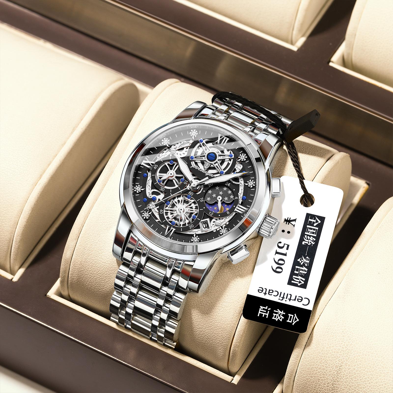 POEDAGAR Роскошные модные мужские часы водонепроницаемые светящиеся мужские наручные часы с датой из нержавеющей стали кварцевые мужские часы с хронографом серебряный/чёрный