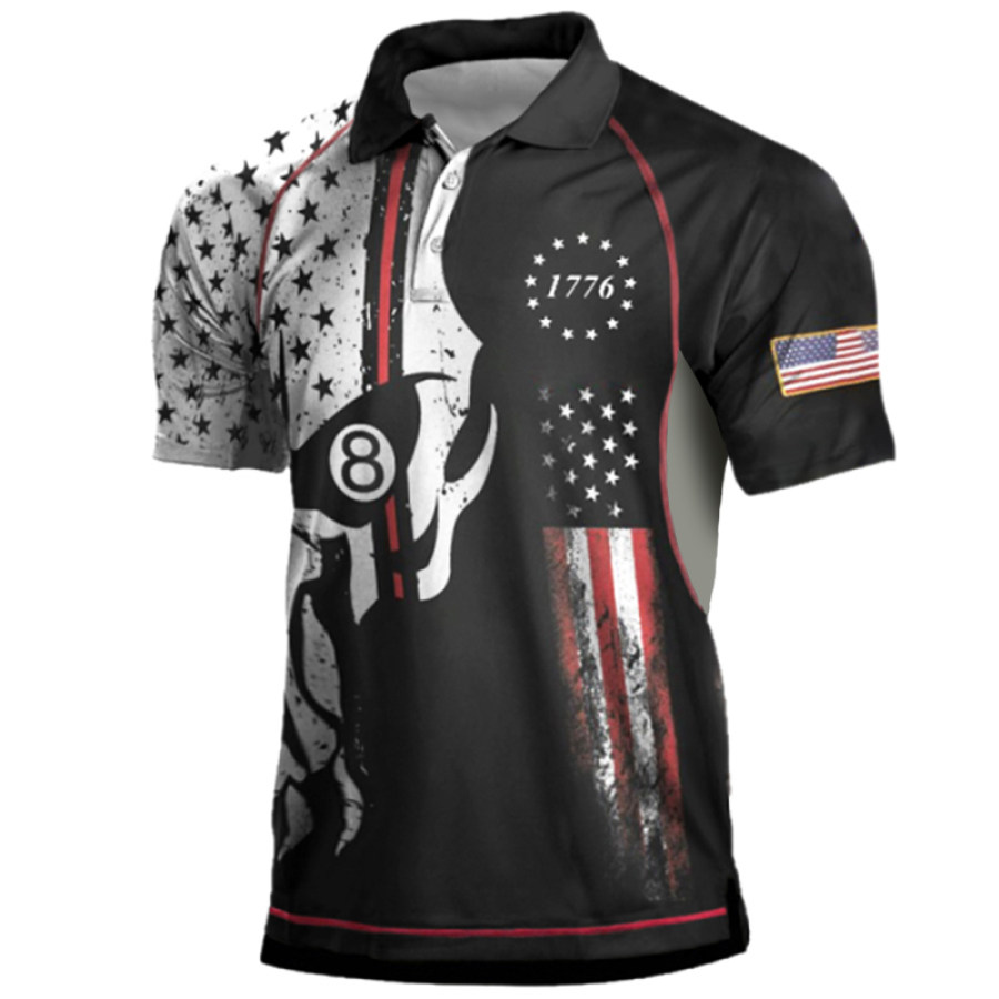 POLO Da Uomo 2nd Amendment Flag Star 1776 Patchwork Print