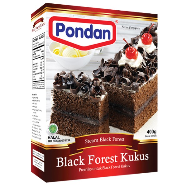 Black Forest Kukus adalah kue yang kaya cokelat yang lezat. Pondan menghadirkan tepung kue Black Forest Kukus yang praktis yang mudah penyajiannya, memilki rasa yang lezat.