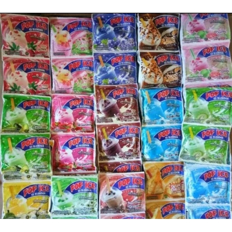 pop ice blender minuman instan dengan berbagai rasa . Harga yang tertera adalah hrga 1renteng isi 10 pcs. UNTUK RASA BISA REQUEST DI CATATAN ,KALAU TIDAK ADA CATATAN KAMI KIRIM RANDOM