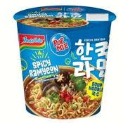 Popmie rasa Korean Spicy Ramyeon,Ramyeon kuah rasa sup jamur pedas ala Korea yang gurih, pedas dan segar berpadu dengan mi yang kenyal dan lebar yang praktis dikonsumsi dengan kemasan Cup