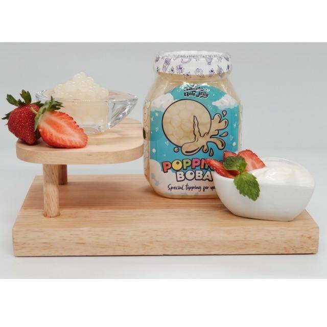 Popping boba adalah topping tambahan untuk minuman, pudding, ice cream, kue dan dessert lainnya. yang hampir sama dengan bubble. Kelebihan dari popping boba ini adalah ketika di gigit akan pecah dan memberikan sensasi rasa buah yang segar.