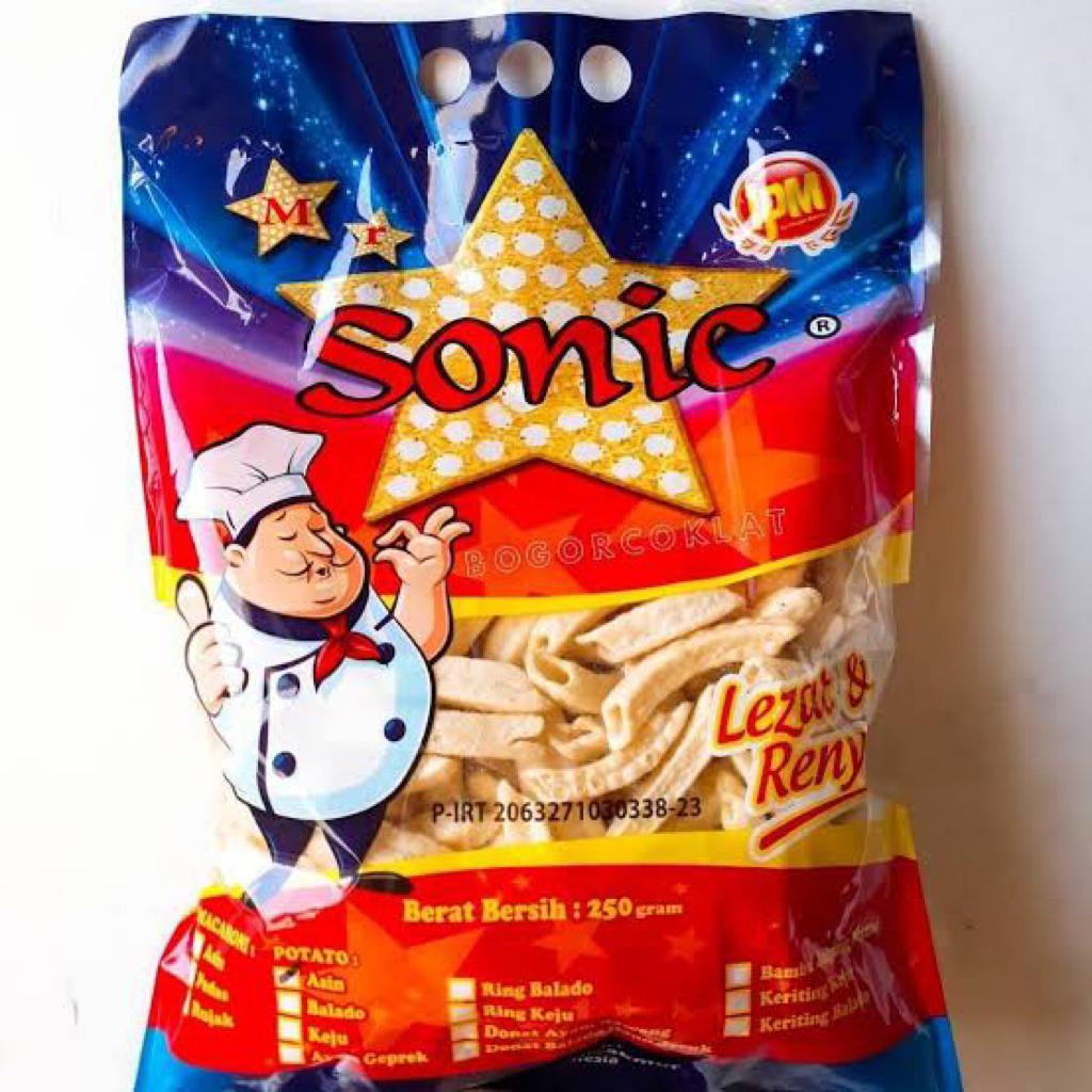 Snack Potato Makaroni Sonic adalah camilan yang menggabungkan tekstur renyah kentang stik dan makaroni dengan rasa gurih yang khas. Produk ini umumnya terbuat dari bahan dasar kentang dan makaroni yang digoreng hingga renyah, kemudian dibumbui dengan berbagai rasa. Menurut deskripsi produk di Shopee, beberapa varian mungkin juga menyertakan kerupuk gurih untuk menambah variasi tekstur.