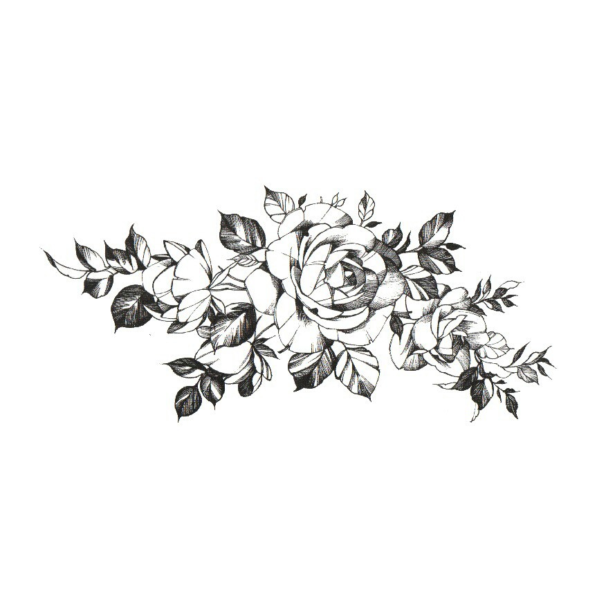 POTATOO Beauty Black And White Roses Temporary Tatto Sticker