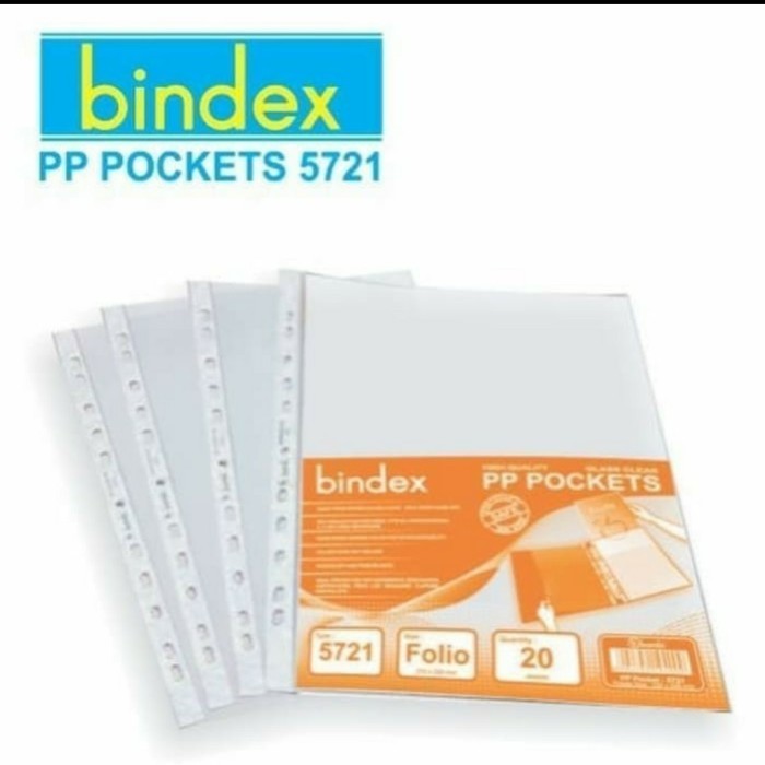 PP Pocket / Document Pocket Bindex Folio (5721) memiliki bentuk menyerupai kantong plastik dengan bukaan atas.