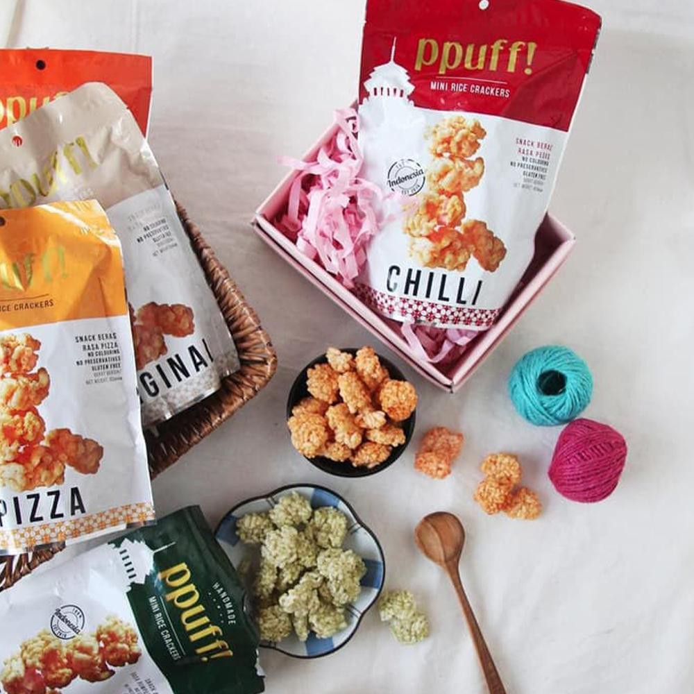 ppuff! adalah mini rice crackers alias rengginang2 mini dgn rasa2 yg modern. Di ciptakan oleh para punggawa Nomnom - Bandung ada thn 2016, ppuff! mewakili kecintaan mereka akan snack2 tradisional yg bagi mereka begitu nikmat bila dikombinasikan dgn bumbu2 modern. Juga mewujudkan mimpi mereka akan mempopulerkan snack2 tradisional yg diolah dgn segala bahan modern tanpa menanggalkan identitas tradisional. Nomnom menciptakan snack rengginang mini ini dgn kualitas tertinggi. Menggunakan beras2 pilihan, pengolahan yg mendetil, dan kemasan yg praktis higienis.