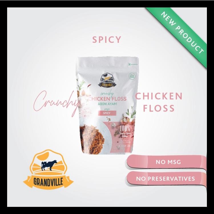 - Grandville abon dibuat menggunakan bagian ayam dengan bagian dan serat terbaik