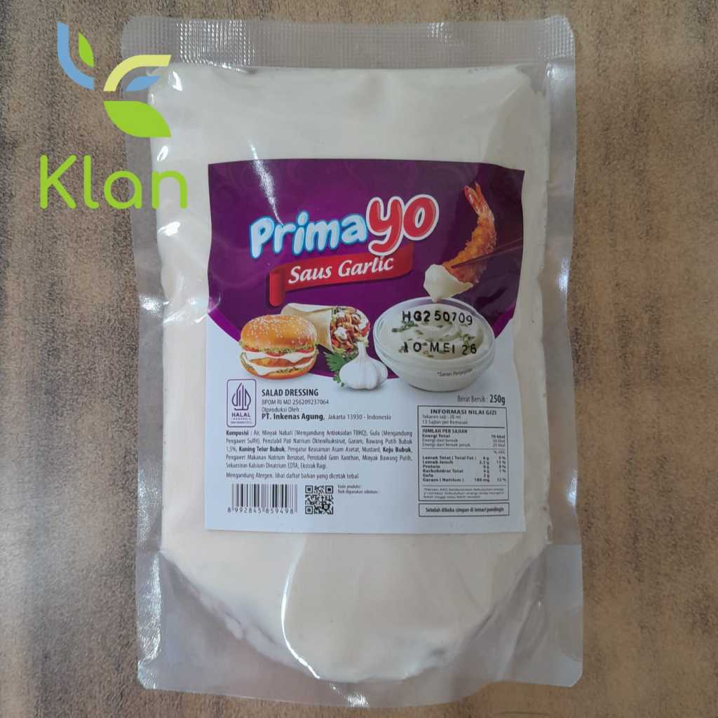 Prima Agung Saus Garlic adalah saus mayones rasa bawang putih yang diproduksi oleh PT Inkenas Agung dengan merek Primayo. Saus ini merupakan perpaduan antara rasa bawang putih yang khas dengan tekstur mayones yang lembut, cocok untuk berbagai hidangan seperti burger, sandwich, atau sebagai saus cocol.