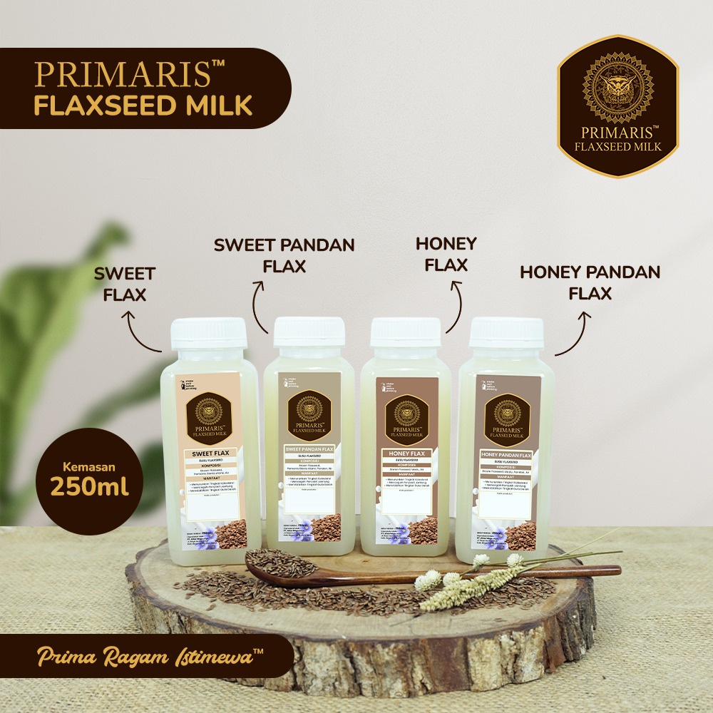 PRIMARIS FLAXSEED MILK (Susu Flaxseed) khas Primaris, terbuat dari perasan flaxseed menghasilkan rasa nikmat, manis, khas dan sehat. Pertama di Indonesia. Terdiri dari 4 macam varian :
