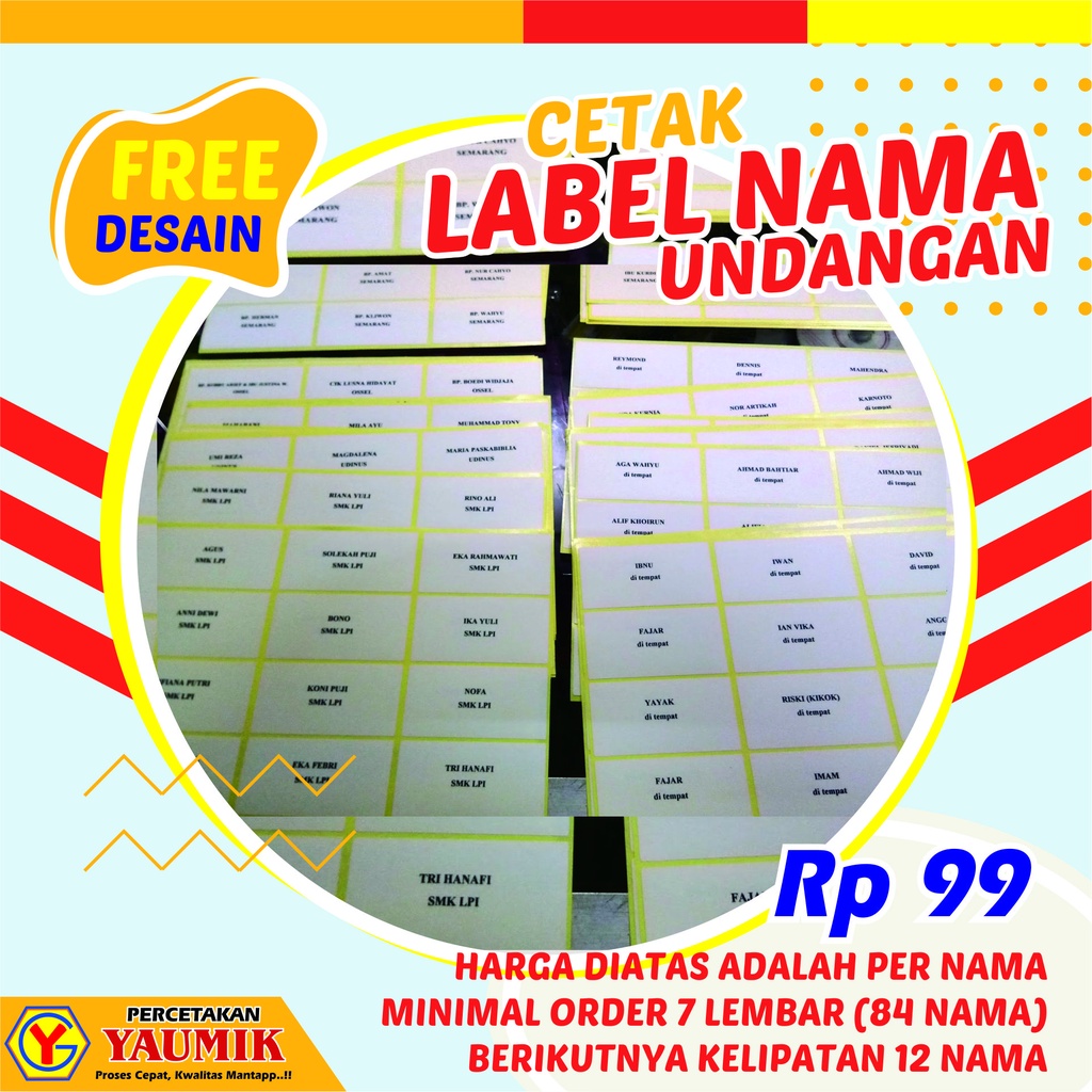 Per Nama / Label hanya Rp. 99,- (Termurah SeIndonesia)