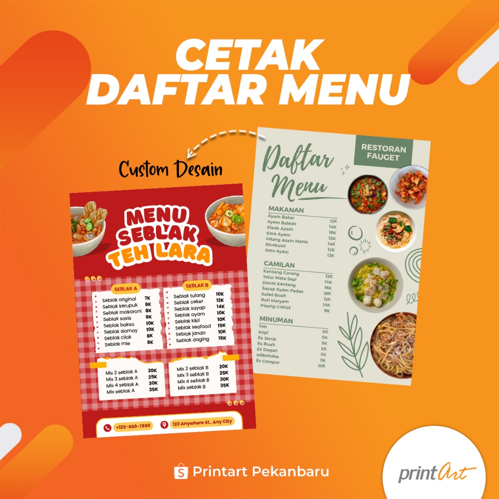PRINTART - CETAK MENU MAKANAN BAHAN 260GRAM / MENU SEBLAK / MENU RESTO / MENU CAFE