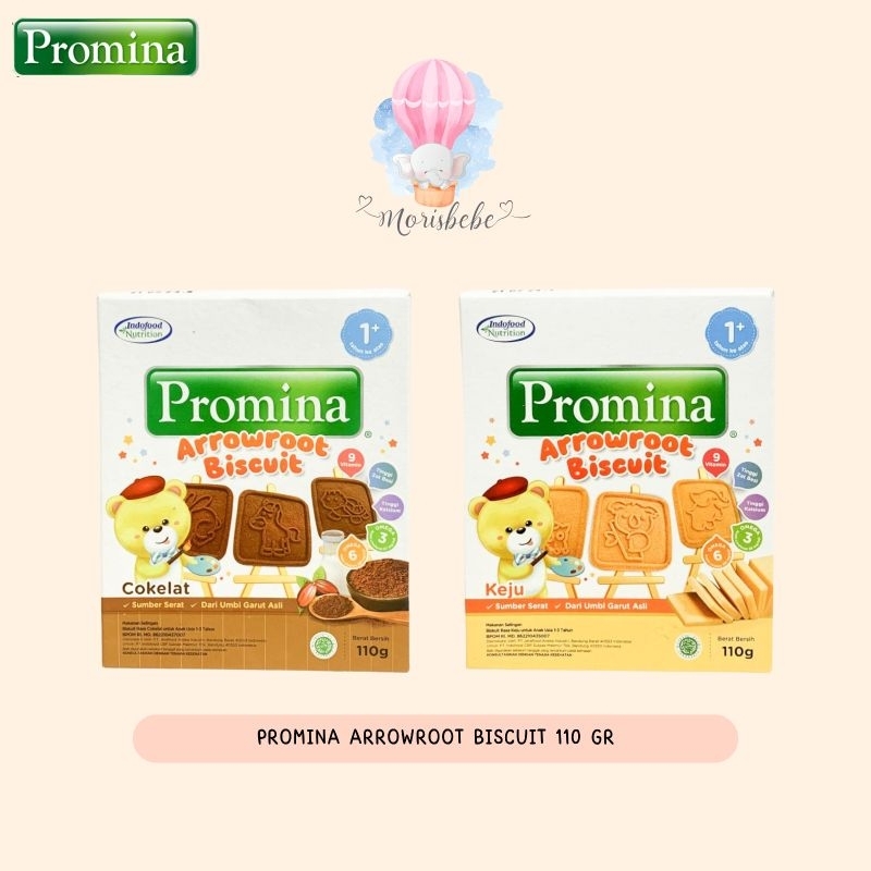 Promina Biskuit Arrowroot dibuat dari umbi garut asli dengan gizi lengkap. Tekstur renyah dilengkapi dengan bentuk karakter hewan untuk menemani masa belajar si Kecil. Promina Biskuit Arrowroot diformulasikan untuk bayi 1 tahun keatas dan terdiri dari 3 varian yaitu Keju, Coklat dan Susu.