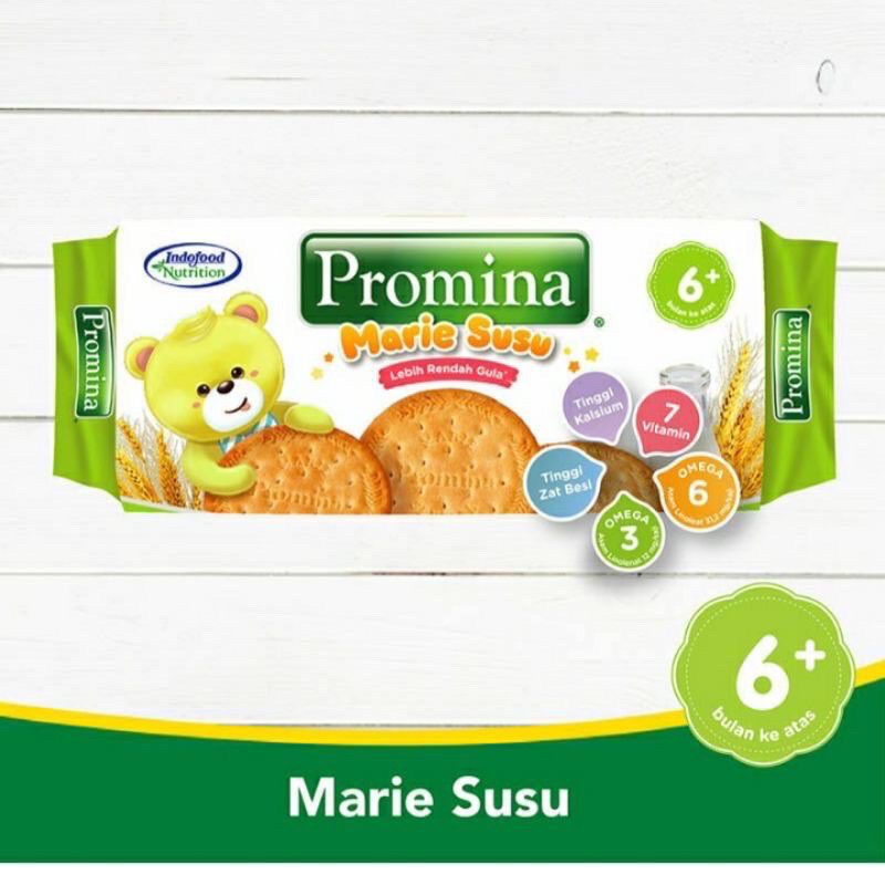 PROMINA Biskuit Marie adalah Marie khusus bayi, tinggi susu dan rendah gula. Tekstur tepat untuk bayi 6 bulan keatas untuk melatih menggigit dan mengunyah. Mudah lumer dimulut sehingga tidak akan menyebabkan tersedak. Gizi Lengkap untuk memenuhi kebutuhan nutrisi si Kecil.