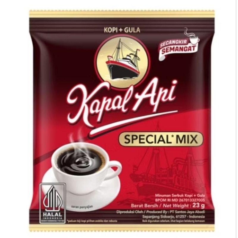 Kopi Kapal Api Special Mix terbuat dari paduan biji kopi berkualitas "Special" dan gula, menghasilkan aroma dan rasa yang jelas lebih enak, siap memberikan semangat untuk memulai hari.
