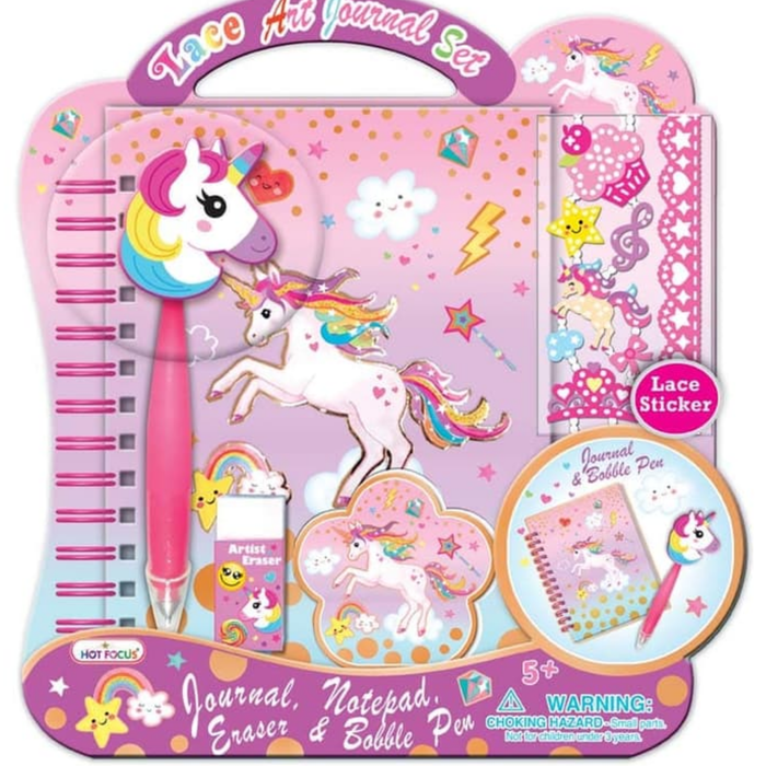 Hadiah besar untuk anak-anak dan pelajar dari segala umur. Sebuah jurnal dengan stiker renda yang hadir dalam banyak desain menarik. Meliputi pena berbaju lucu untuk membuat pengorganisasian pikiran Anda lebih menyenangkan. Untuk usia 5 tahun keatas