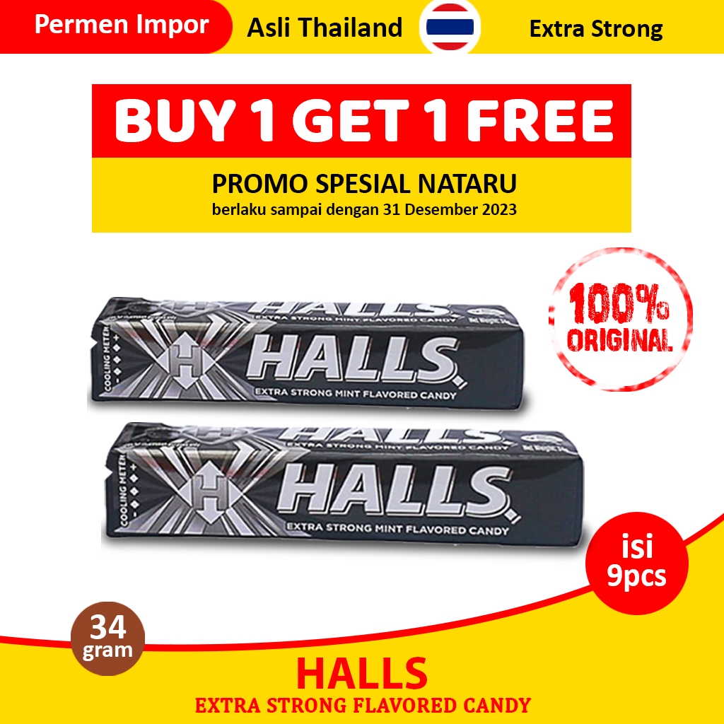 PROMO BUY 1 GET 1 - Permen Halls Extra Strong - Permen Impor Asal Thailand