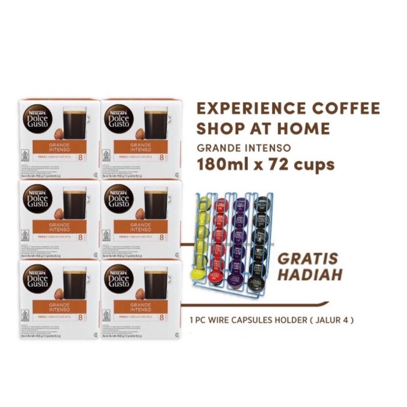 PROMO Paket 6 Box Nescafe Dolce Gusto Grande Intenso Capsule + FREE 1 Pcs Rak Capsule 4 Jalur Biru (Berlaku Kelipatan)