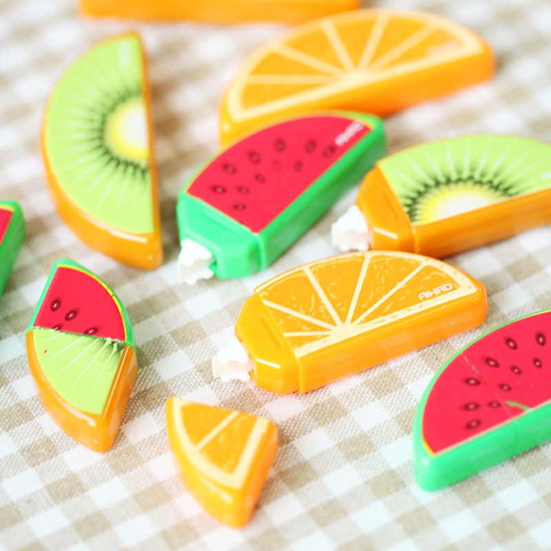 Correction Tape Model buah, setiap set terdiri dari 3 buah correction tape dengan model yang sama. Model yang tersedia, yakni: