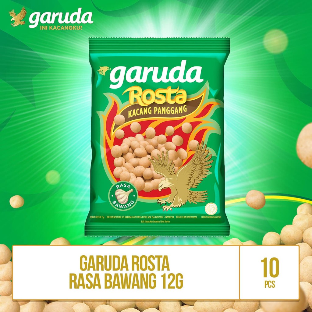 Garuda Rosta Rasa Bawang 12g x 10 merupakan kacang persembahan Garudafood yang hadir dalam varian rasa yang nikmat dan gurih untuk Anda.
