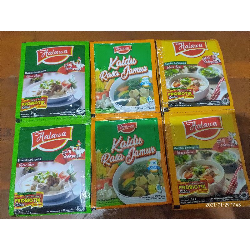 .Kami menjual produk penyedap rasa Halawa 12gr..dijamin exp date pasti fresh produk..tersedia rasa sapi dan ayam..alhamdulillah sudah ready rasa sapi dan ayam..