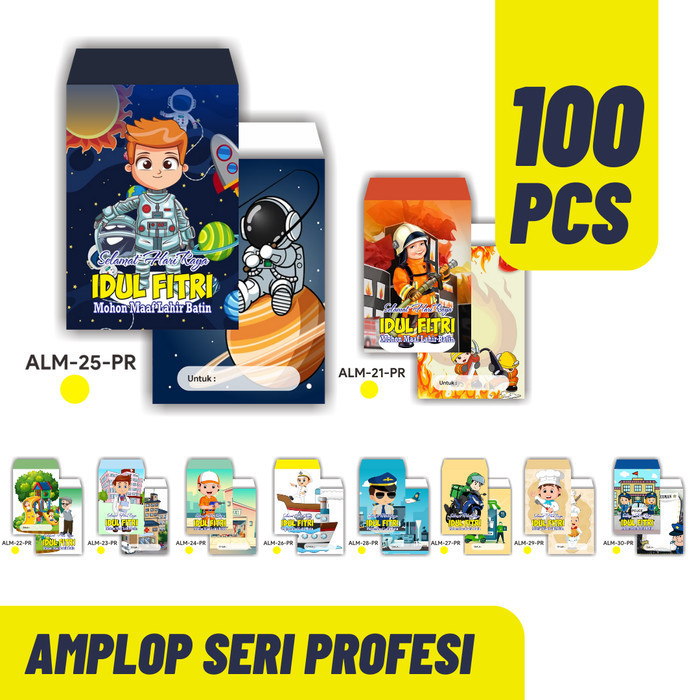 PROMO PAKET 100 AMPLOP LEBARAN MOTIF PROFESI KARTUN - TERLARIS - RANDOM
