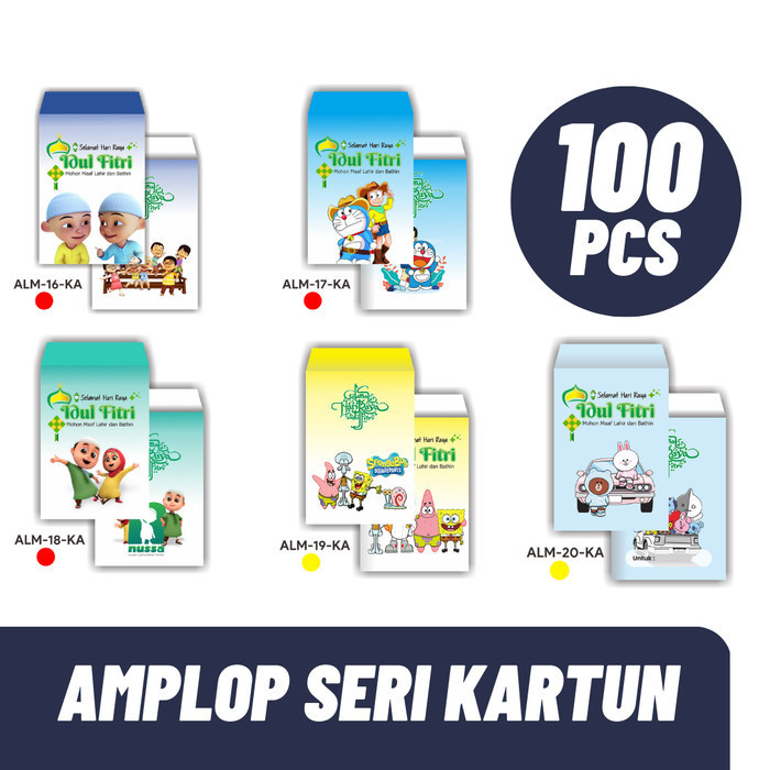 PROMO PAKET 100 PCS AMPLOP LEBARAN MOTIF KARTUN - TERLARIS - RANDOM