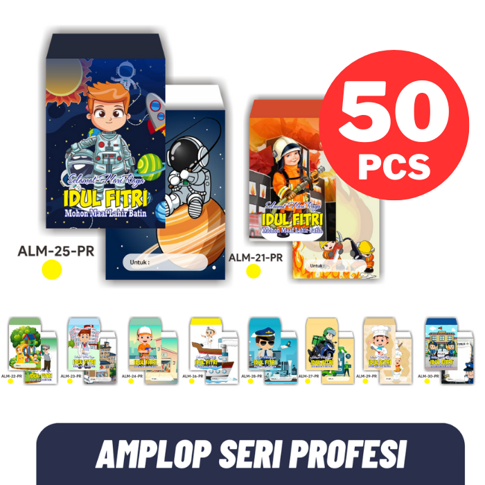 PROMO PAKET 50 AMPLOP LEBARAN MOTIF PROFESI KARTUN - TERLARIS - RANDOM