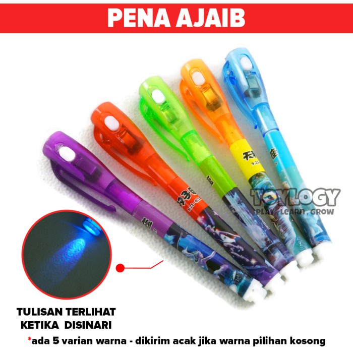 Salah satu alat tulis yang booming pada zamannya. Pulpen ini adalah pulpen ajaib dalam artian tulisan yang ditulis oleh pulpen ini tidak akan tampak oleh mata normal, tulisan hanya akan terlihat ketika disinari sinar UV yang terletak pada pulpen.