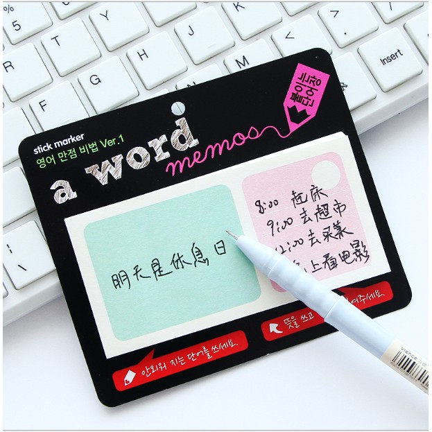 Stick note A Word Memos ini terbuat dari bahan kertas, desain sederhana, warna menarik.