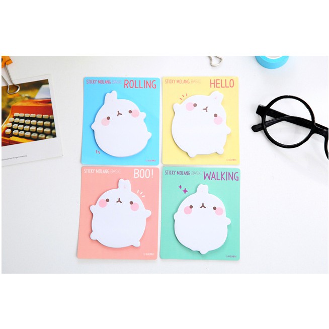 Stick note Molang basic terbuat dari bahan kertas. Isi 30 lembar.
