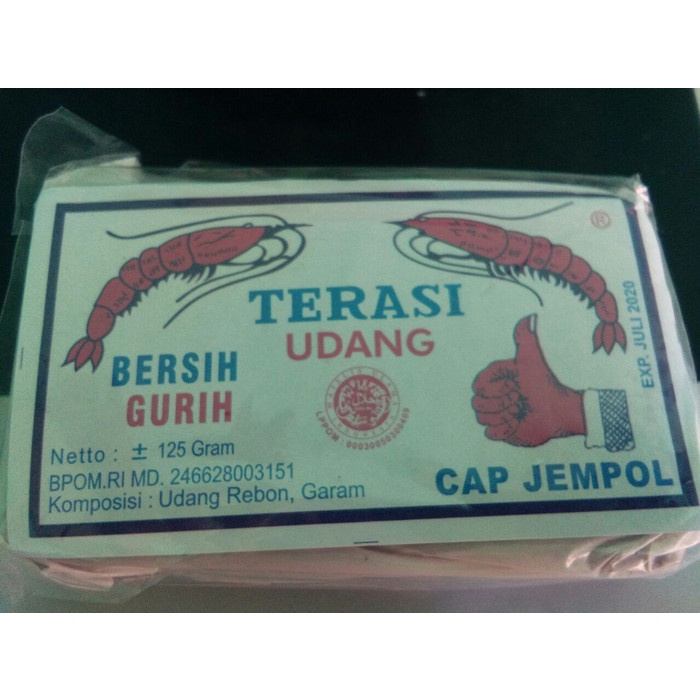 Terasi Asli Udang rebon cap Jempol khas Cirebon terbuat dari rebon udang pilihan yang diolah secara di gunakan sebagai tambahan dalam bumbu memasak. Sangat Cocok bagi pecinta sambal terasi.