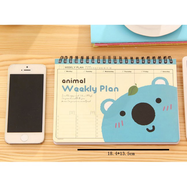Weekly planner Kartun Binatang ini terbuat dari bahan kertas tebal, sampul plastik. Desain lucu, isi banyak. Cocok untuk kamu yang perlu mencatat perencanaan keseharianmu.
