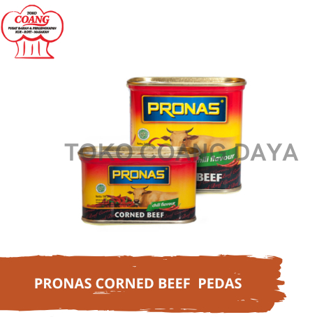 PRONAS Kornet Sapi Pedas adalah produk olahan daging sapi berkualitas yang dikemas dalam kaleng steril, menghasilkan rasa gurih pedas yang nikmat dan praktis sebagai bahan masakan sehari-hari.