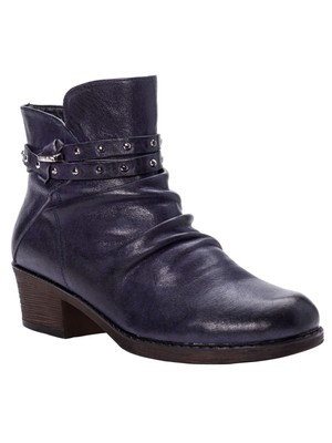 PROPET Женские темно-синие кожаные ботильоны Roxie с заклепками и круглым носком на блочном каблуке, Navy, WFX135L